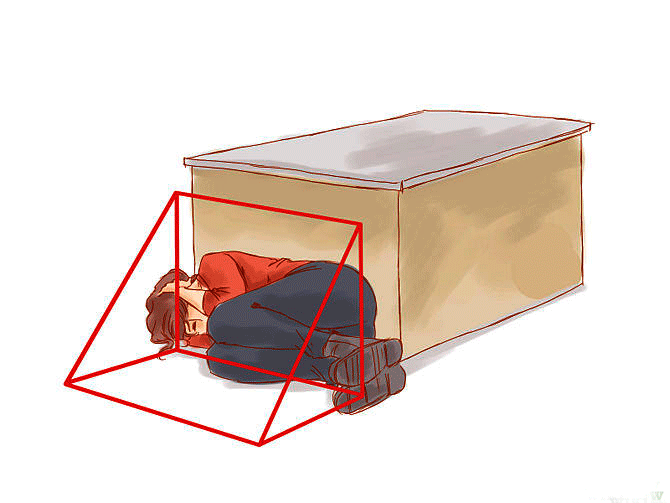 El triángulo de la vida es mucho más seguro, que estar debajo de una puerta, cuando un edificio colapsa, ya que, si nos colocamos debajo del marco de la puerta, y éste empieza a moverse hacia adelante o hacia atrás, podemos morir cortados por el mismo marco.