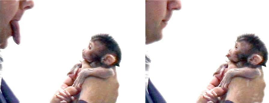 Durante el crecimiento y desarrollo el bebé es capaz de imitar no sólo sonrisas, sino también movimientos de lengua, sonidos y reconocer rostros de diferentes personas que gracias a las neuronas espejo son posibles.